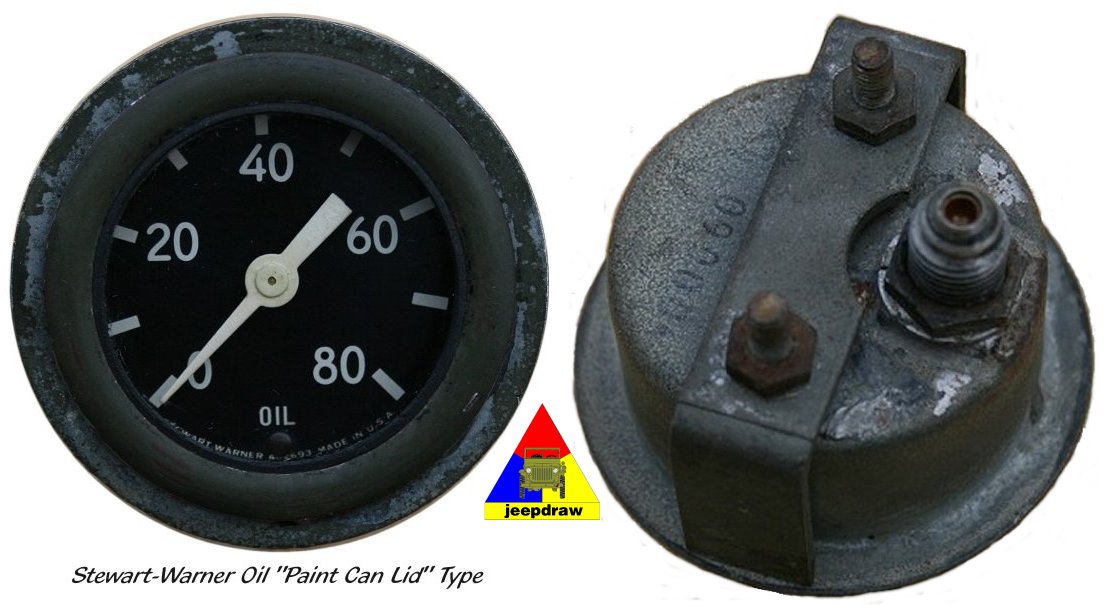 Warner paint can lid Fuel (long needle), Oil, Amp and Temp gauges.